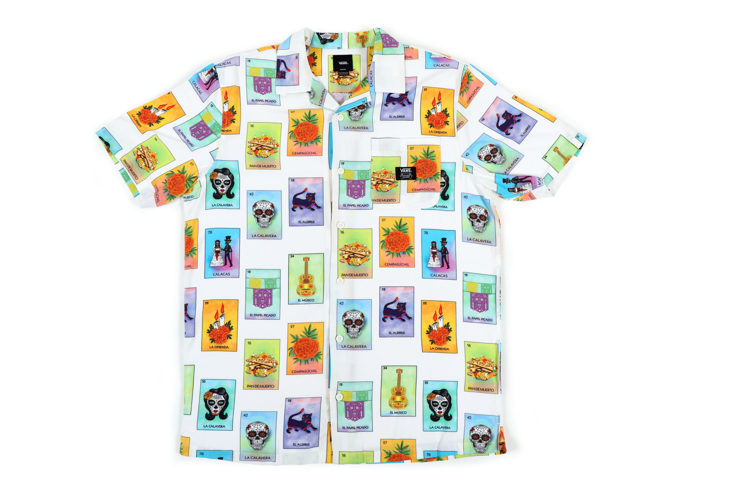 Para celebrar este año, la colección de Día de Muertos de Vans se inspiró en los símbolos que representan a esta tradición tan querida en nuestro país. Elementos como: la flor de cempasúchil, el pan de muerto, los catrines y el papel picado, hacen su aparición en un estampado que imita el juego clásico de la lotería mexicana.
