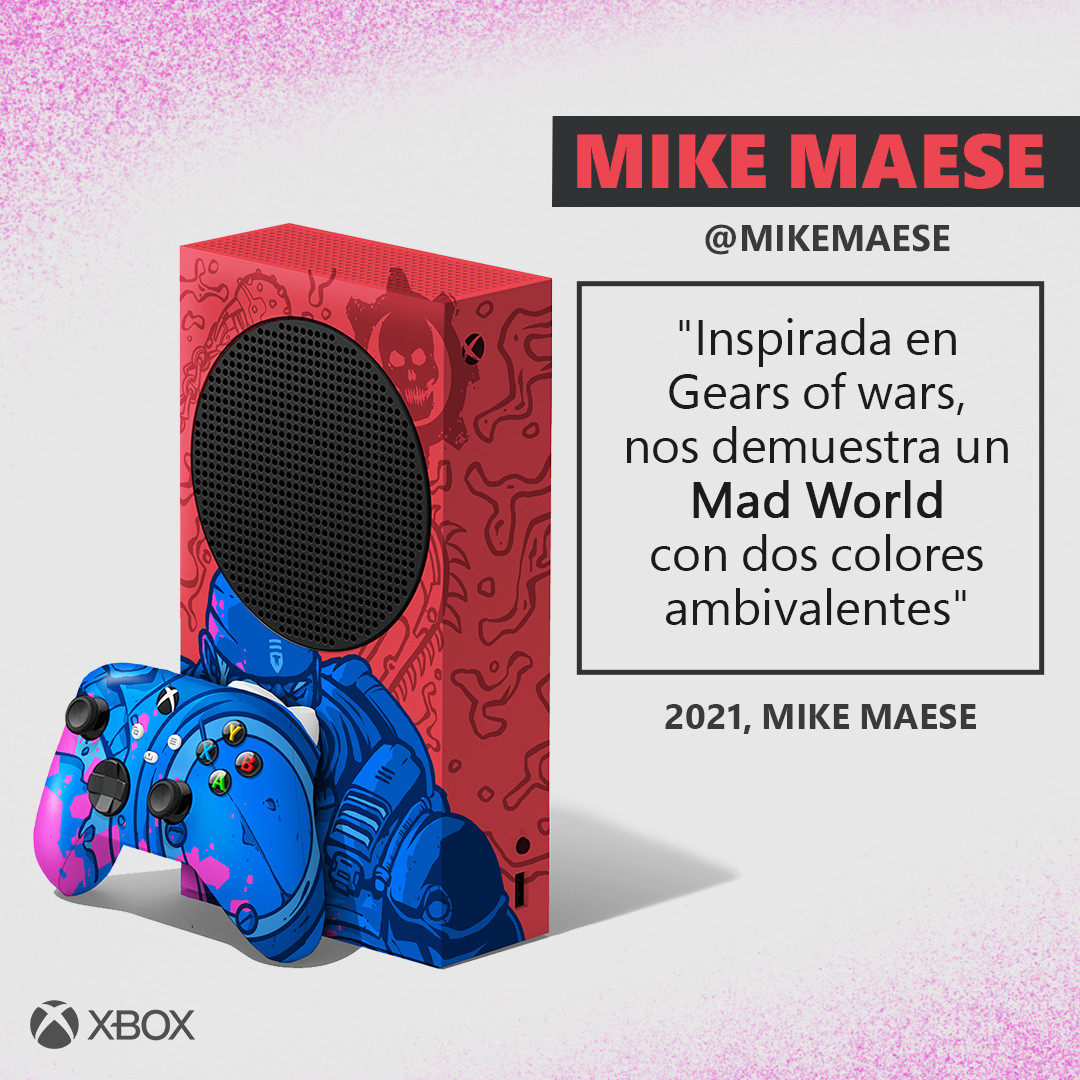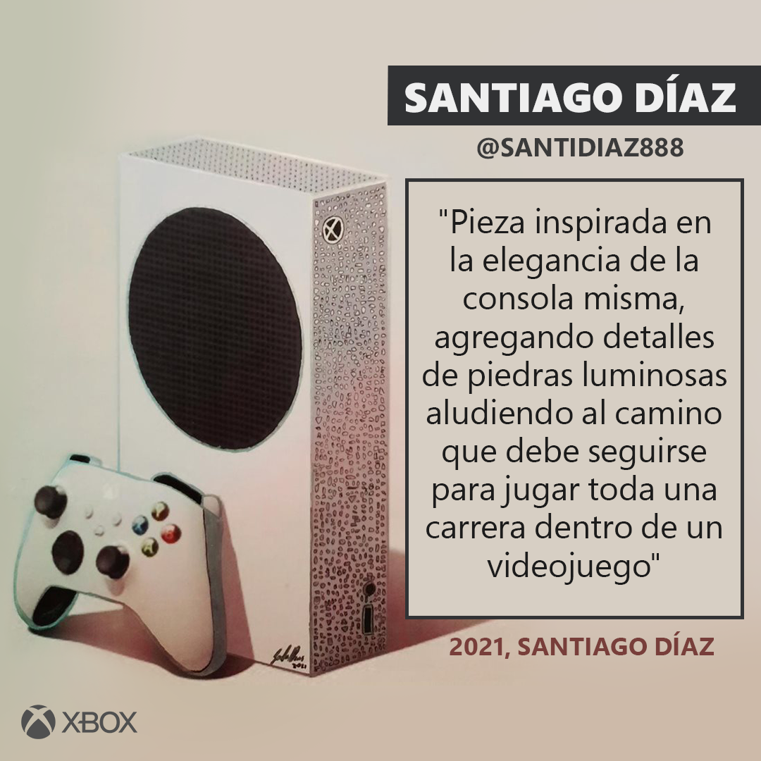 Como parte de esta actividad, Mike Mease, Prince Lauder, Santiago Díaz Guichón y Soy Serrano, se dieron a la tarea de soñar cada uno un diseño diferente que recrearon en papel, o mejor dicho, en una imagen, mismos que Xbox Mexico reveló hoy a través de sus redes sociales para dejar en manos de su comunidad la decisión sobre cuál de estas ideas se llevará a la realidad. Por medio de una votación, serán los fanáticos de Xbox quienes elijan su Xbox Series S edición especial favorita; la propuesta ganadora será hecha realidad y, lo mejor de todo, es que esta consola será sorteada entre los fans de la marca.