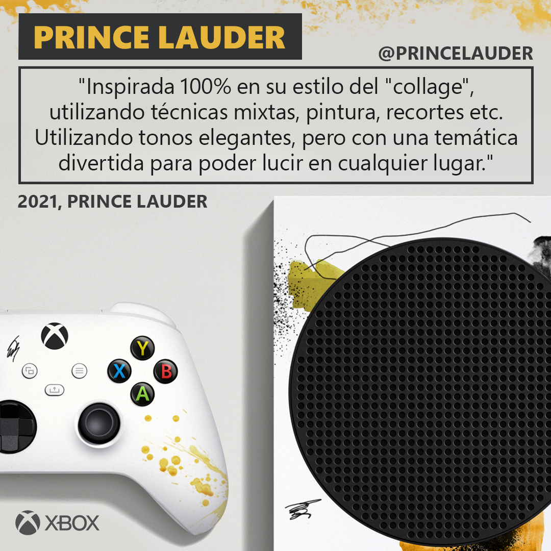 Por otro lado, el toque personal de Prince Lauder es la elegancia y la diversión; a través de su diseño al que llamó, “Collectors Edition”, nos muestra que la mezcla de técnicas puede crear algo muy cercano a la perfección. “Me emociona mucho colaborar con industrias tan creativas y divertidas como Xbox México, siempre he admirado el trabajo del arte en los videojuegos, la animación, los gráficos, y sin duda es un honor ser parte de este proyecto.” Comentó el artista acerca de su participación en el proyecto; “En mi caso fue muy inspirador y divertido el proceso, ya que encontré una relación muy grande entre el collage y el mundo tan diverso que hay en los videojuegos.”, puntualizó.