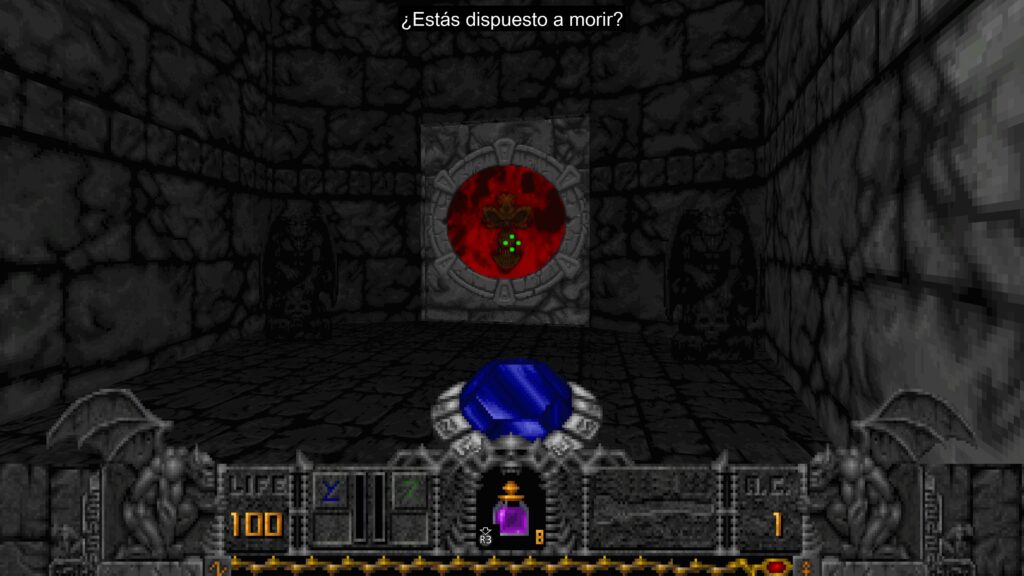 Heretic fue el “Doom de fantasía oscura”… pero hoy brilla por mérito propio. Su inventario (Quartz Flask, Time Bomb, Chaos Device, Shadowsphere, Wings of Wrath) y el mítico Tome of Power —que sobrealimenta cada arma— le imprimen un ritmo táctico adelantado a su época. La rotación entre Phoenix Rod, Ethereal Crossbow, Dragon Claw, Gauntlets y el ocasional Firemace convierte cada arena en un pequeño puzzle de optimización: ¿gastarlo ahora o guardarlo para el miniboss?
