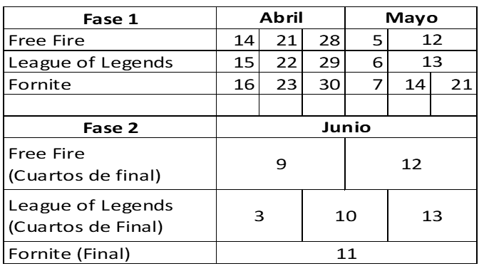 • Torneo en dos fases que inician el 14 de abril y cierran con la gran final el 11 de junio.