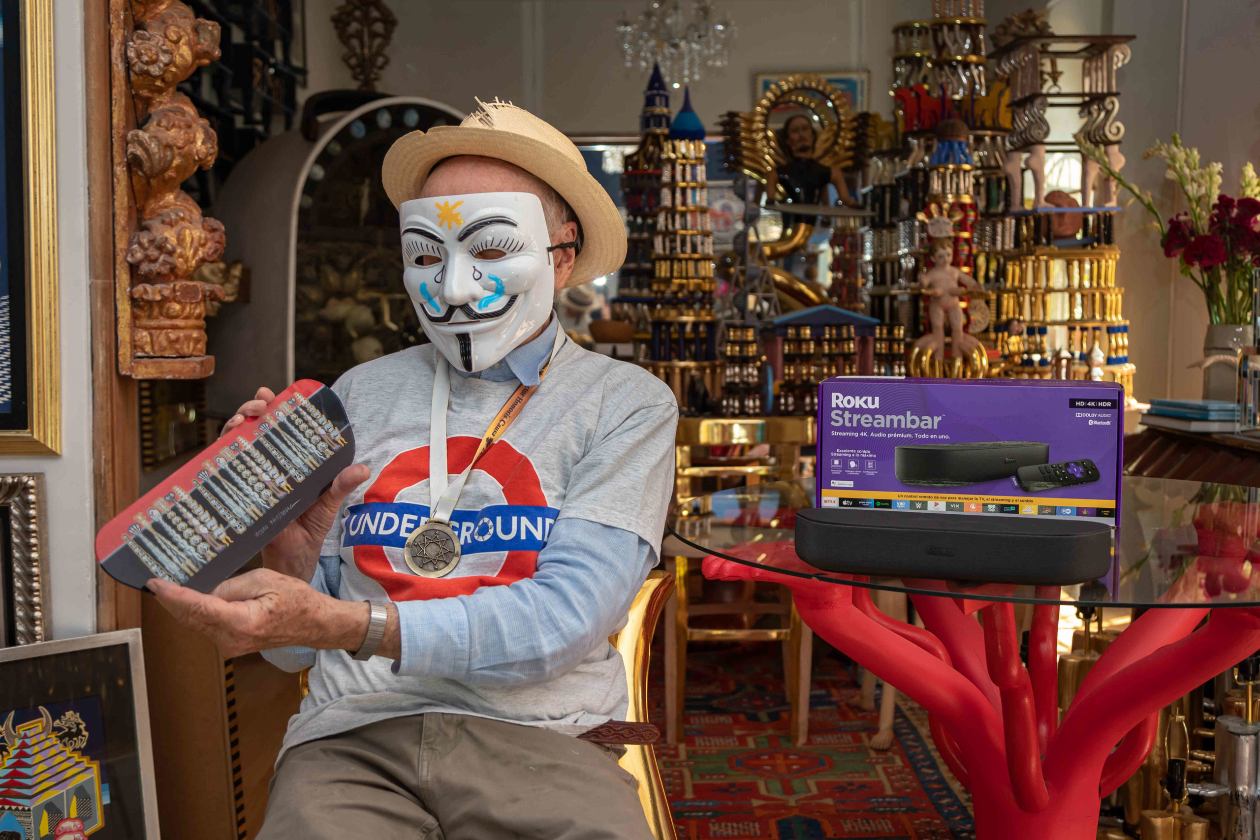 Esta colaboración da fruto a un protector decorativo de edición limitada con el arte de Pedro Friedeberg, el cuál, al colocarse en el Roku Streambar, lo convierte en un objeto de colección que combina lo mejor de la tecnología de Roku con la estética surrealista de este artista, cuyas obras han sido expuestas alrededor del mundo, desde Nueva York, Ciudad de México y Francia, hasta Canadá, Alemania y Barcelona.