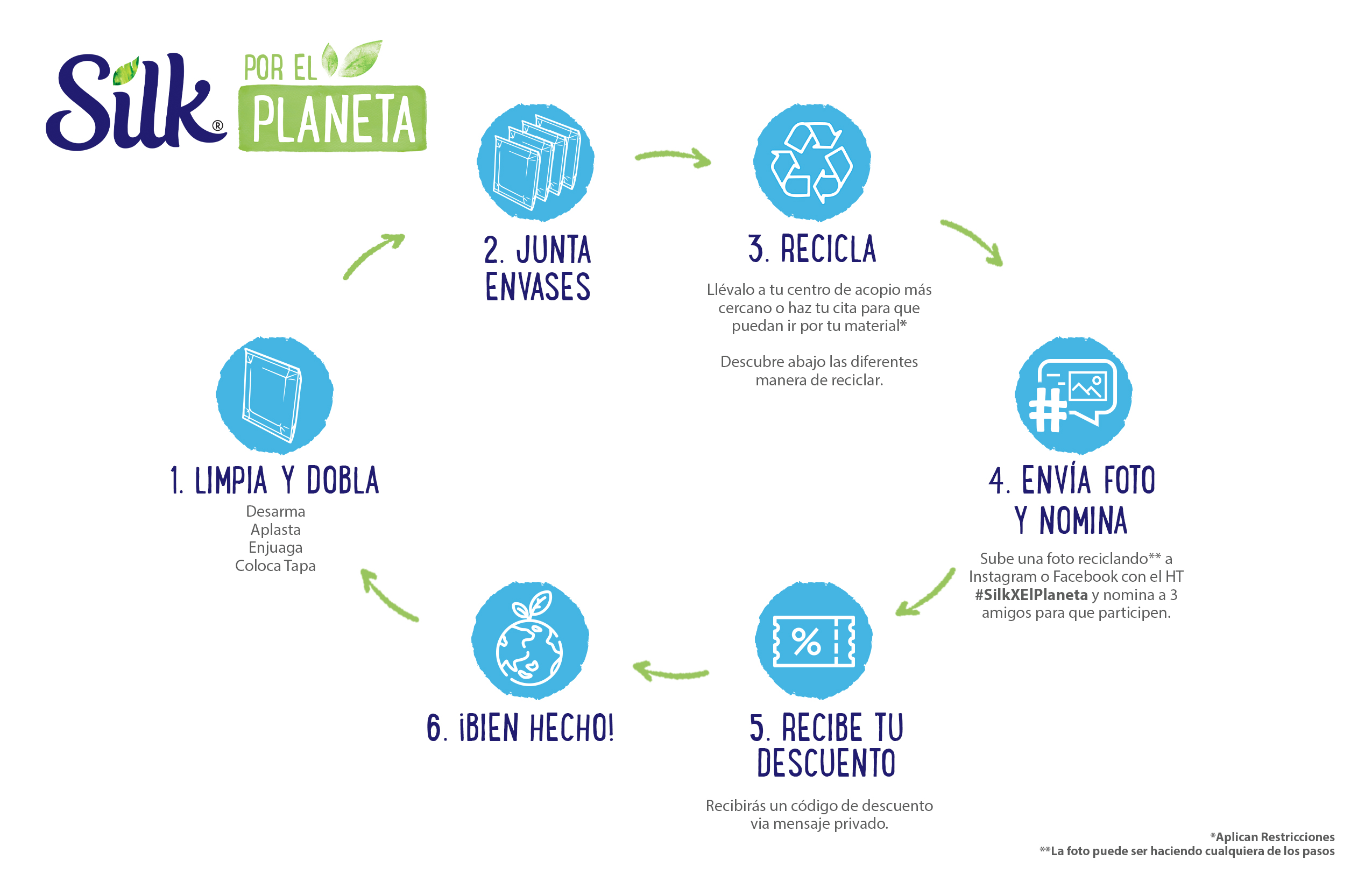 - Sube una foto reciclando con el #SilkXElPlaneta, nomina a tres amigos y recibe un envío gratis en tu siguiente compra